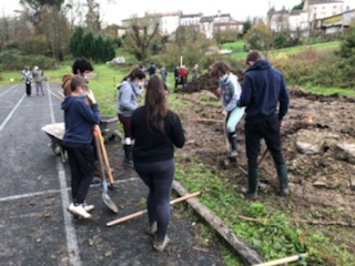 À cette occasion, c’est l’ensemble des élèves et du personnel de l’établissement qui a chaussé les bottes et œuvré avec fourches et râteaux pour ce verger bio.